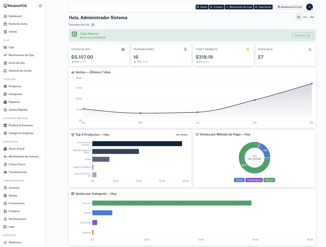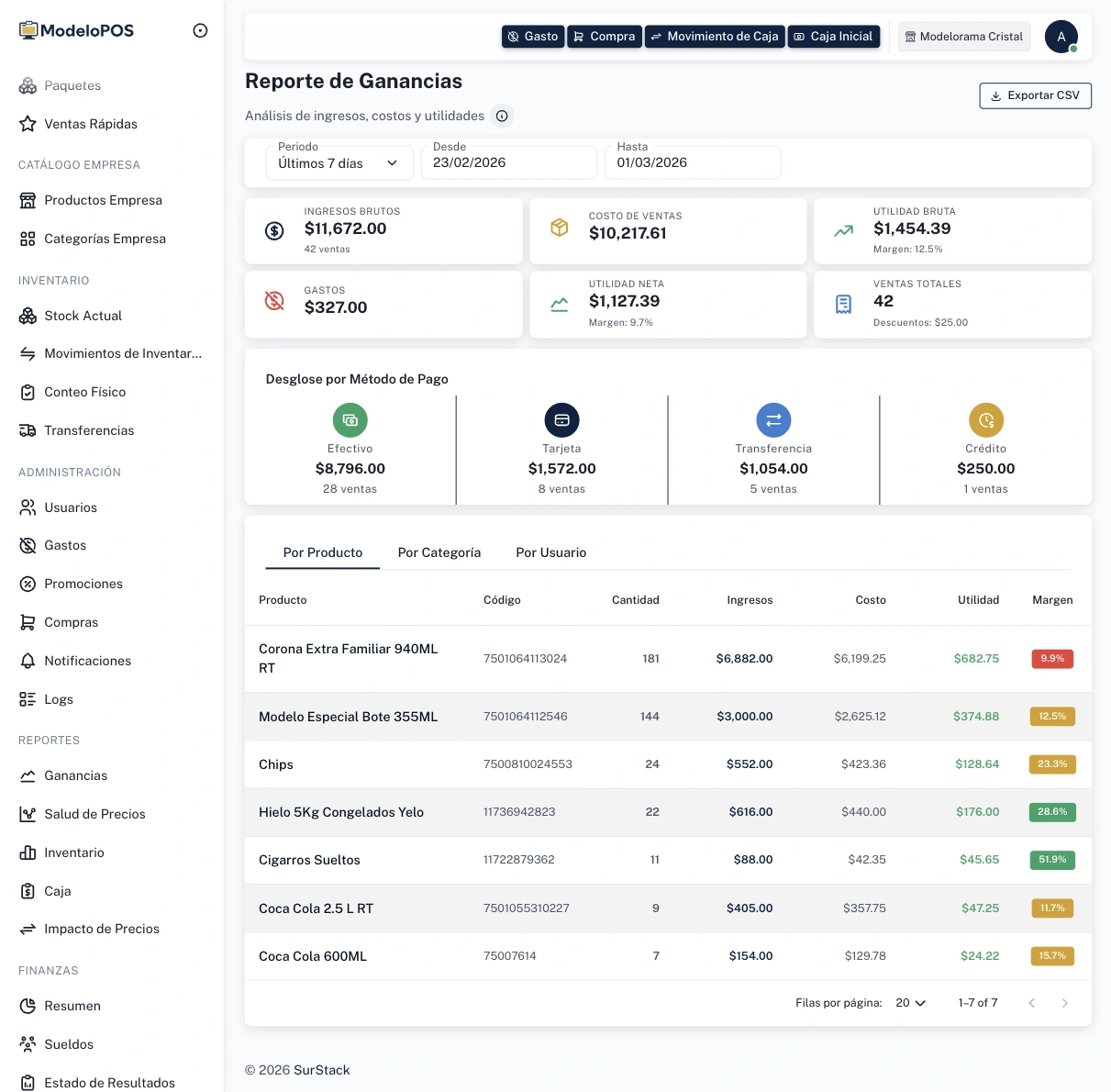 Si tienes un mostrador y vendes productos, ModeloPOS es para ti.